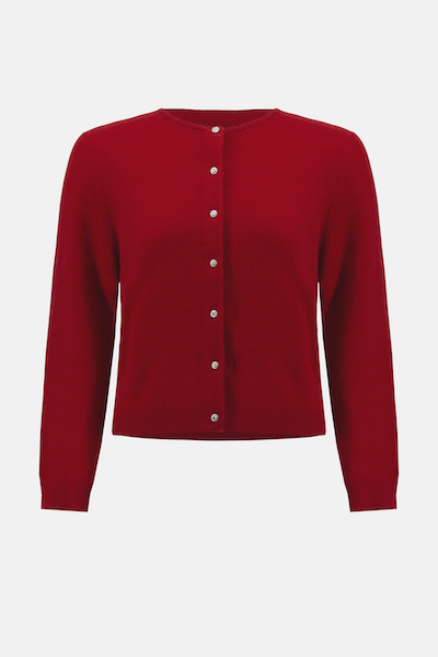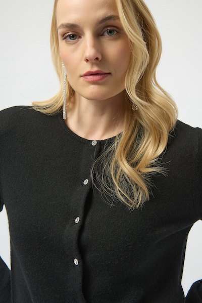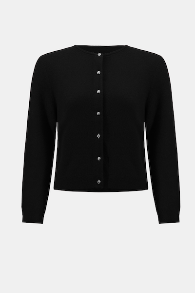 Ce cardigan boutonné en cachemire, orné de boutons en strass scintillants, est la pièce idéale à superposer par temps frais pour une allure soignée. Avec son col ras du cou et ses manches longues à revers, il respire la douceur et l'élégance naturelle.