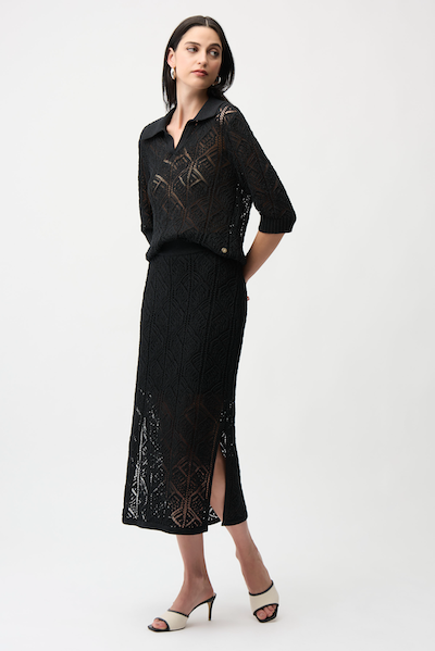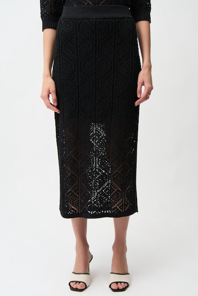 Cette jupe en maille de coton mélangé présente une coupe crayon et un design ajouré. Des fentes latérales et une ceinture élastique intégrée assurent un confort optimal, tandis que la doublure en maille apporte structure et souplesse.