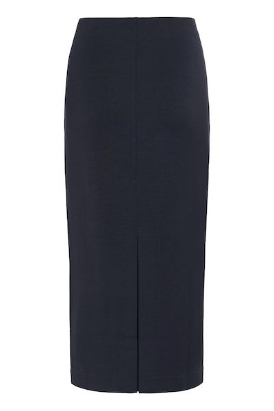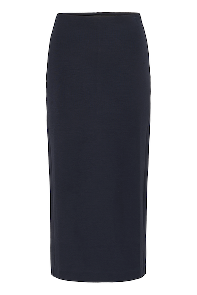 Jupe marine longue en modal. Parfait pour des looks plus habiller comme pour des looks plus décontractés.