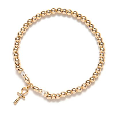 Fabriqué à partir de perles de 4 mm en argent sterling ou en vermeil or 14 carats, le bracelet Be an Amulet présente une breloque symbolique de votre choix : la Clé de Vie (C-A) ou la Main de Protection (M-A).