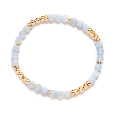 Doté de délicates perles d'agate dentelle bleue de 4 mm, ce bracelet est parfait pour les minimalistes qui préfèrent le porter seul ou le superposer pour créer différents volumes et des piles harmonieuses.