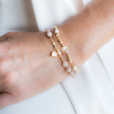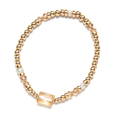 Élégant, lumineux et protecteur dans l'esprit, le bracelet Be a Guardian – Desert Queen (DQ) présente une combinaison harmonieuse de cristal de champagne autrichien, de minuscules cristaux de champagne et de petites perles d'eau douce, le tout enfilé sur des perles métalliques de 4 mm pour un design raffiné et polyvalent.