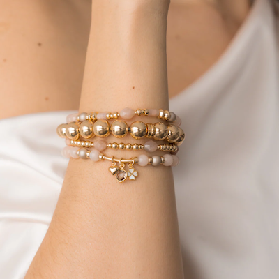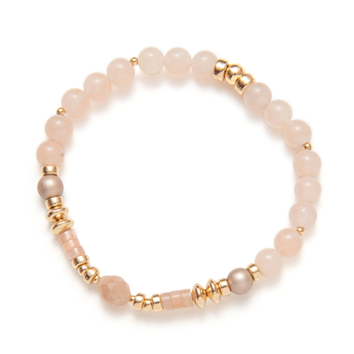 Un équilibre parfait entre textures et éclat naturel. Le bracelet Be Refined associe avec élégance des perles en pierre de soleil et des rondelles de quartz pêche, sublimées par une pierre de soleil centrale qui capte la lumière d'un éclat doux et chaleureux. Deux touches de nacre complètent le design, apportant une touche d'harmonie et d'élégance intemporelle.