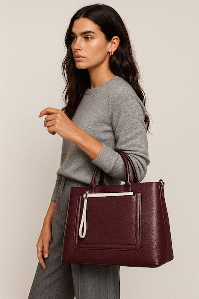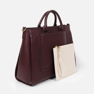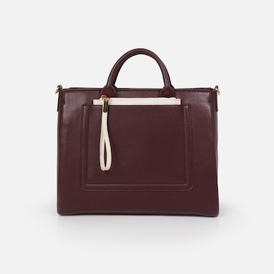 Élégant et fonctionnel, ce sac à main bourgogne en PU texturé est l’allié parfait pour vos journées actives. Sa pochette ivoire amovible apporte une touche de contraste raffinée et une praticité supplémentaire, idéale pour organiser vos essentiels.
