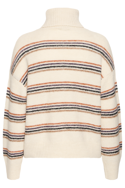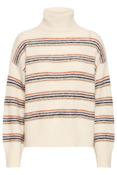 Ce pull à col roulé pour femme présente une coupe décontractée et une maille douce et confortable. Ses manches longues et son col montant offrent une chaleur optimale, tandis que ses rayures apportent une touche subtile. Idéal pour une tenue décontractée ou de bureau polyvalente.