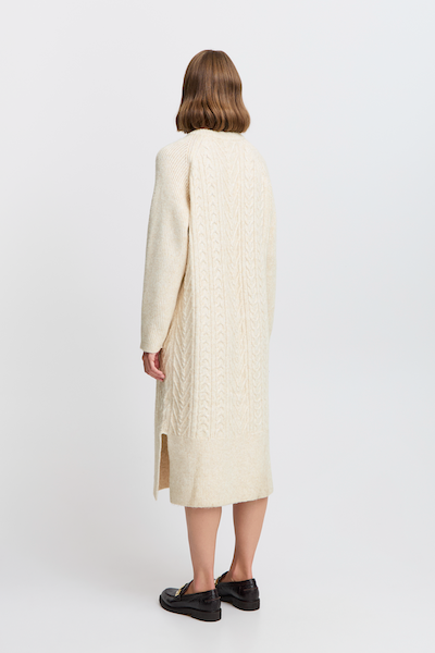 Robe cardigan beige et longue. Parfait pour un look décontracter et pour les journée relaxe, en étant tout de même bien habiller.