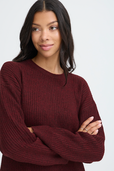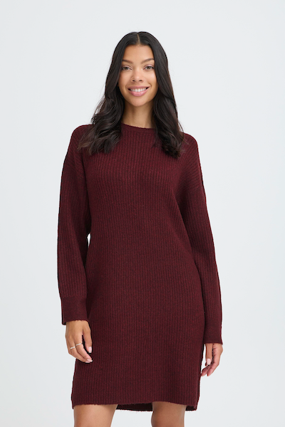 Robe bourgogne à manches longues en lainage. Parfait pour agencer confort et style.