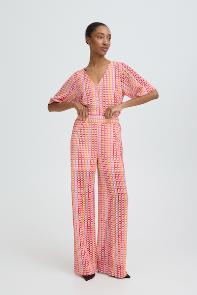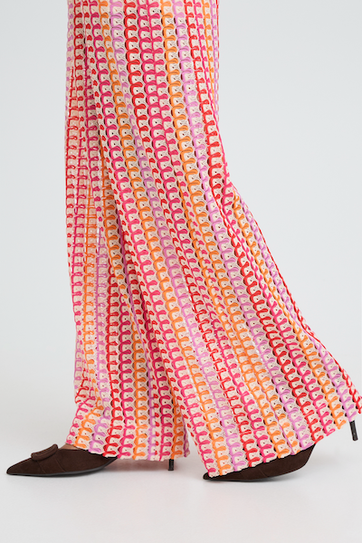 Pantalon à imprimé rose et orangé. Parfait pour ajouté une touche de style qui sort de l'ordinaire.
