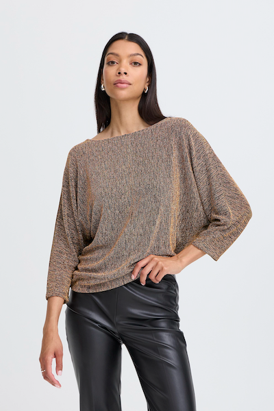 Chandail or style chauve-souris. Parfait pour un look décontracter ou chic avec une touche d'élégance.