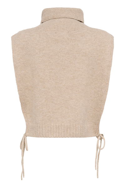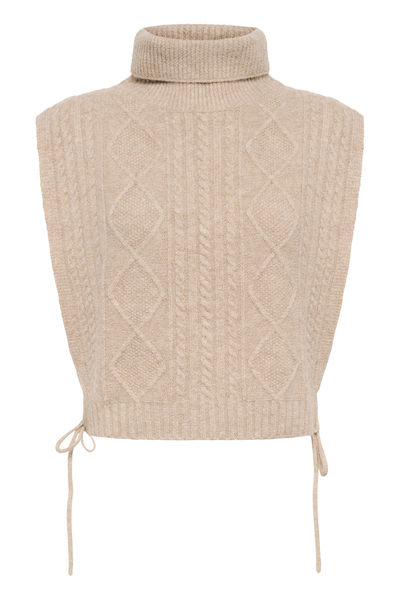 Ce gilet sans manches à col roulé en maille offre une coupe décontractée et arbore des torsades, une encolure haute et des liens réglables sur les côtés. Conçu pour une superposition polyvalente et un confort optimal, il offre une sensation de douceur idéale au quotidien.