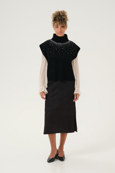 Débardeur noir avec col et brillant du col au buste. Parfait pour compléter un look avec un peu de brillant, tout en douceur.