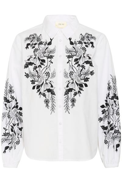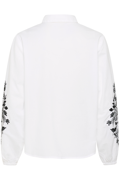 Chemise femme avec broderie contrastée, col classique, manches longues, coupe ample et boutonnage. Convient au bureau et au quotidien.