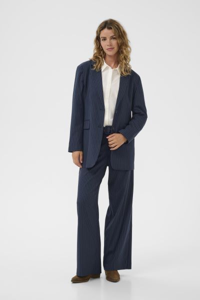 Veston marine avec ligné verticale blanc. Parfait pour compléter un look plus habillé. Le veston peut autant faire un look plus classe que décontracté.