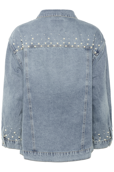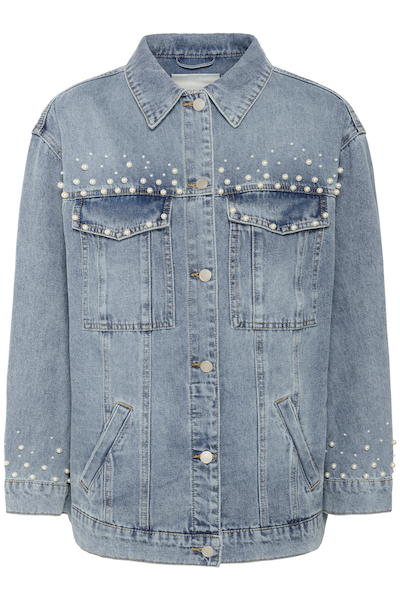 Cette veste en jean ornée de perles offre une coupe décontractée, un col classique, une fermeture boutonnée et une longueur polyvalente. Ce vêtement d'extérieur en denim pour femme est idéal pour les superpositions décontractées et dispose de poches avant pratiques.