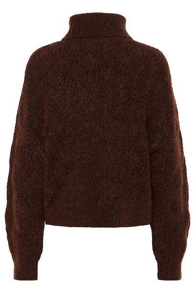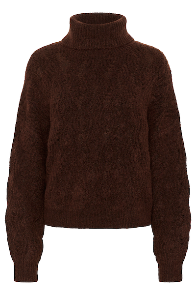 Chandail avec col rouler et manches longues brun chocolat. Fait en tricot parfait pour les journée ou l'on souhaite être confortable toute avec style.