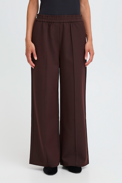 Ce pantalon à jambes larges pour femme offre un confort optimal tout au long de la journée grâce à sa coupe ample et décontractée. Doté d'une taille haute élastiquée, d'une longueur standard et de coutures apparentes sur le devant, il constitue une pièce moderne et polyvalente qui s'accordera avec toutes vos tenues.