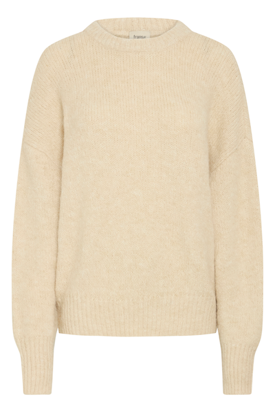 Chandail à manches longues crèmes, col rond. Parfait pour se réchauffer durant les changement de saison.