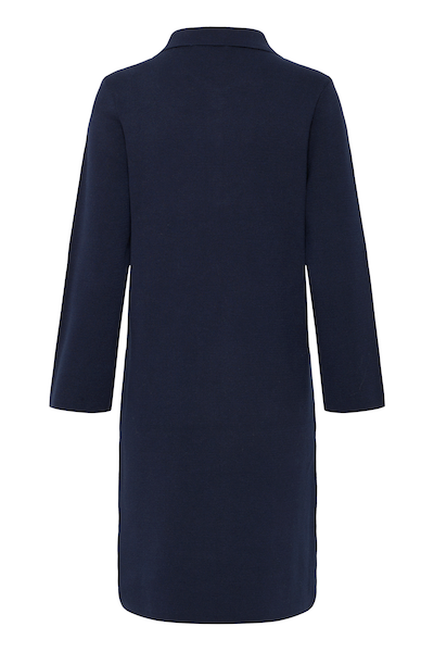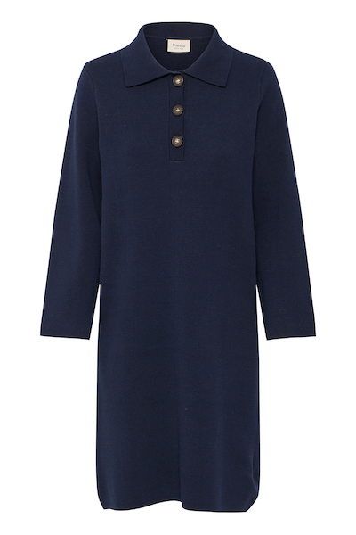 Cette robe en maille pour femme associe un col tailleur à une patte de boutonnage et une coupe décontractée. Ses manches confortables à épaules tombantes et sa longueur au-dessus du genou lui confèrent un look décontracté et confortable.
