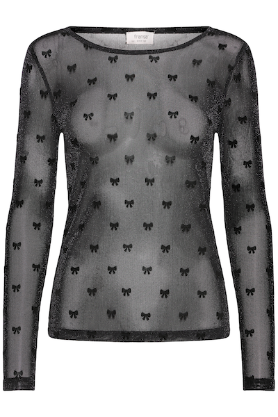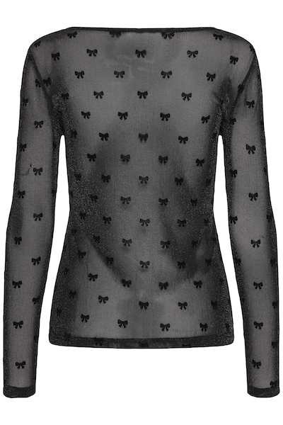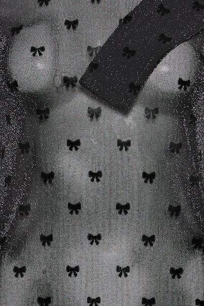 Chandail en mesh noir avec imprimer de petites boucles noirs. Parfait pour compléter des looks chic avec style ou pour des occasions spéciale.