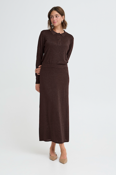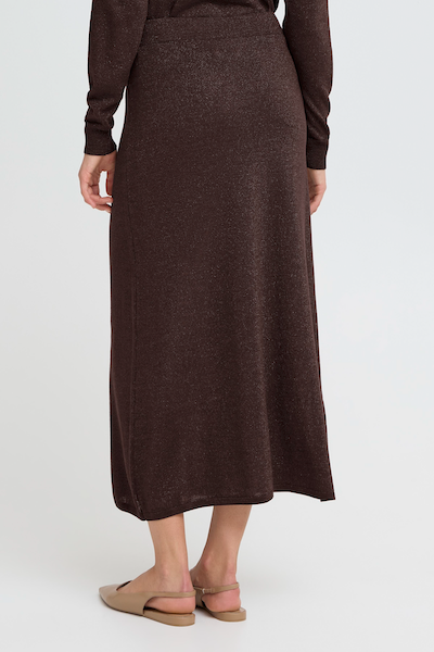 Jupe longue brune à brillant. Parfait pour le temps des fêtes et les occasions spéciales, tout en ajoutant une touche de couleur.
