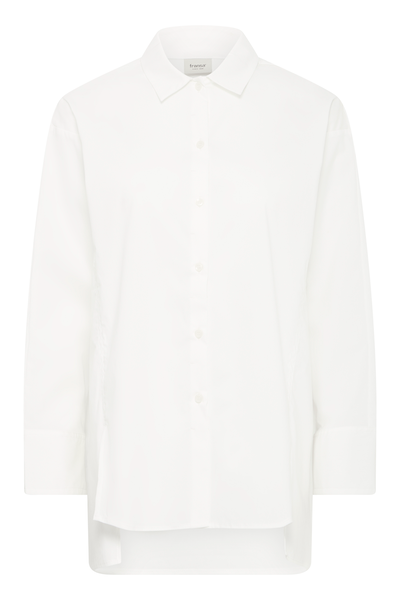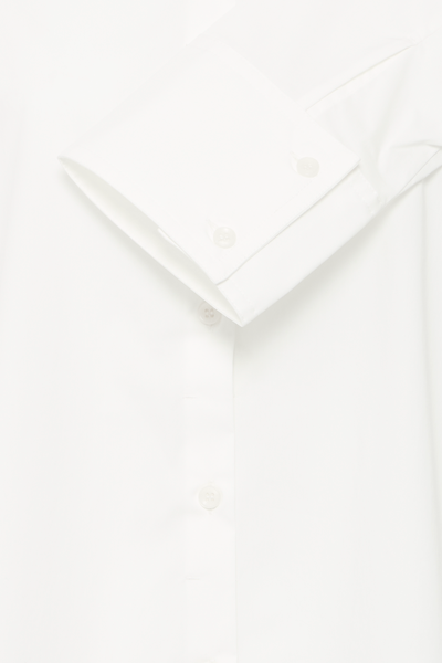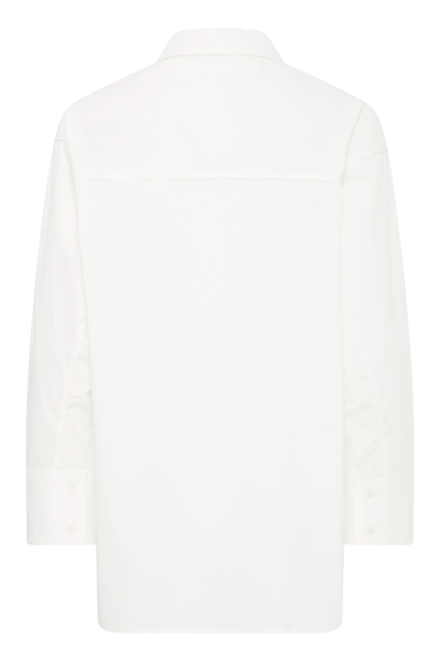 Chemise blanche à manche longue. Parfait pour avoir un morceau versatile dans sa garde-robe, et parfait pour compléter des look plus charger avec une touche de simplicité.