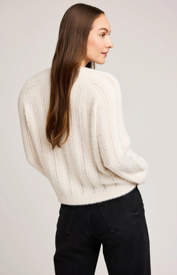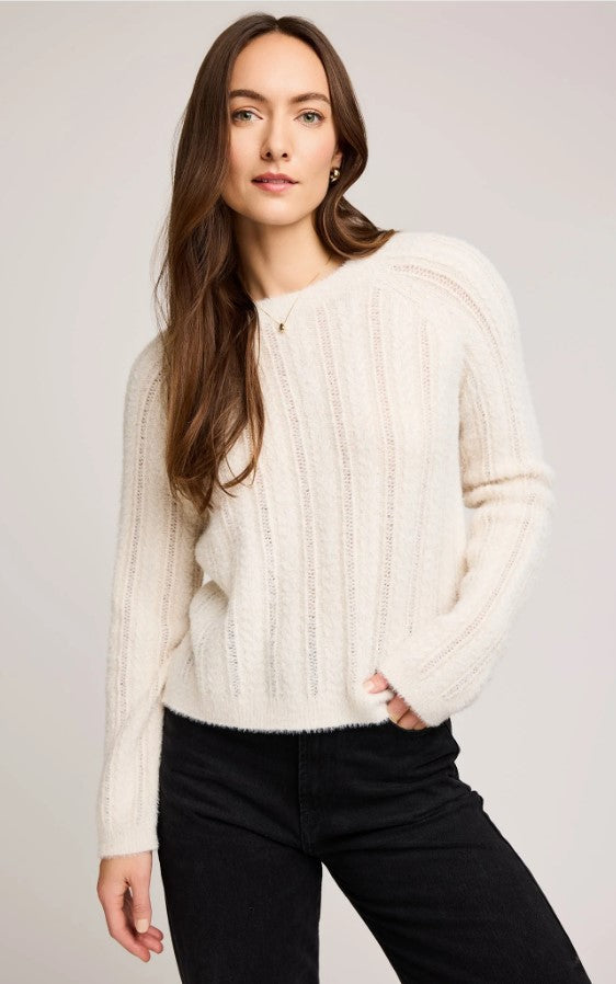 Le pull Cornelia est confectionné dans un fil douillet au toucher doux. Il présente des manches raglan et un motif torsadé sur toute la surface.