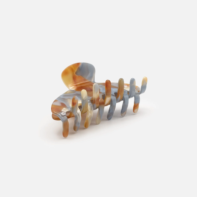 Apportez une touche élégante et originale à vos coiffures avec cette pince en plastique aux nuances marbrées de bleu pâle, caramel et ivoire. À la fois pratique et tendance, elle maintient vos cheveux avec style et s’adapte aussi bien à vos looks du quotidien qu’aux occasions spéciales.