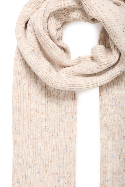 Foulard Beige avec picot multicolore, parfait pour compléter un look durant la mi-saison.