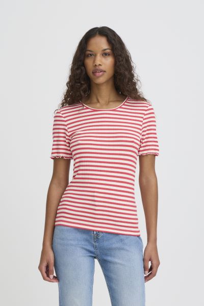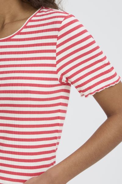 Ce t-shirt ajusté à côtes propose une encolure ronde et des manches courtes pour une silhouette élégante et un confort optimal au quotidien.