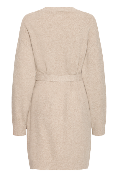 Chandail en lainage crème avec ceinture à la taille en boucle. Parfait pour avoir un look plus ajusté en délicatesse.