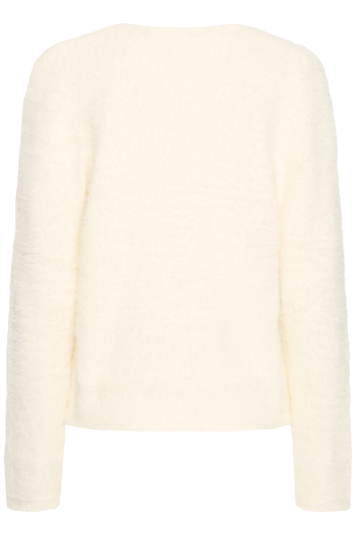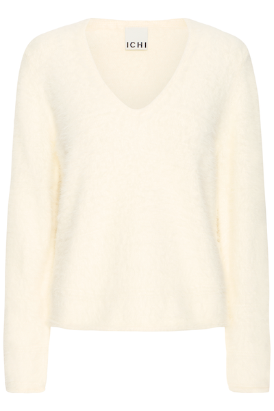 Chandail crème à manche longue et encolure en «V». Parfait pour se tenir au chaud dans les temps plus frisquet en ajoutant une touche décontracté à votre look.