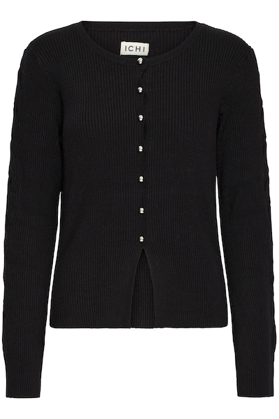 Cardigan noir à bouton. Parfait pour ajouter de la délicatesse au look.