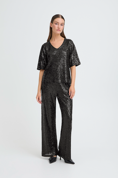 Top à sequins à la coupe droite, à la texture chatoyante, col en V, manches courtes et larges et fermeture discrète en forme de goutte dans le dos. Un style résolument moderne pour des occasions exceptionnelles.