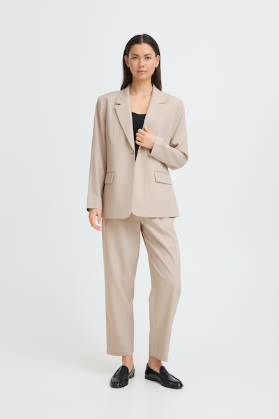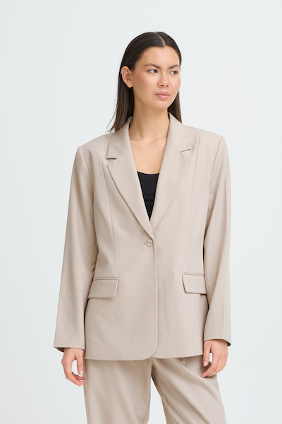 Blazer à la coupe droite et légèrement structurée, fermeture à un bouton, revers crantés et deux poches à rabat sur le devant. Manches longues et finition mate lisse.