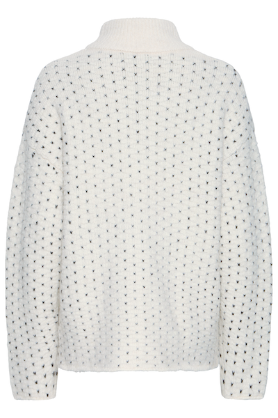 Haut à manche longue blanc et noir avec un col. Coupe droite, pour une silouhette naturellement tendance au quotidien.