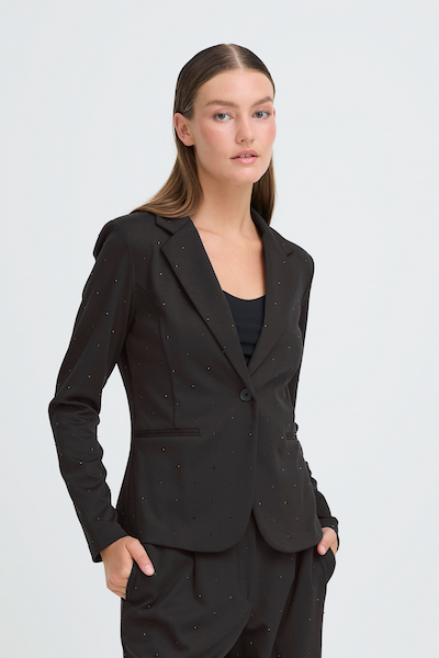 Veston noir avec brillant noir à manches longues. Parfait pour ajouter une touche de brillant, tout en douceur.