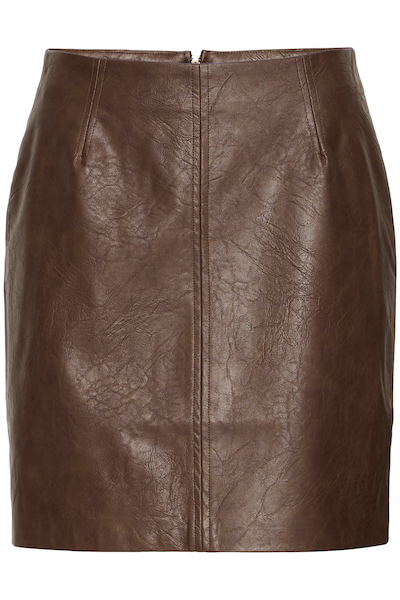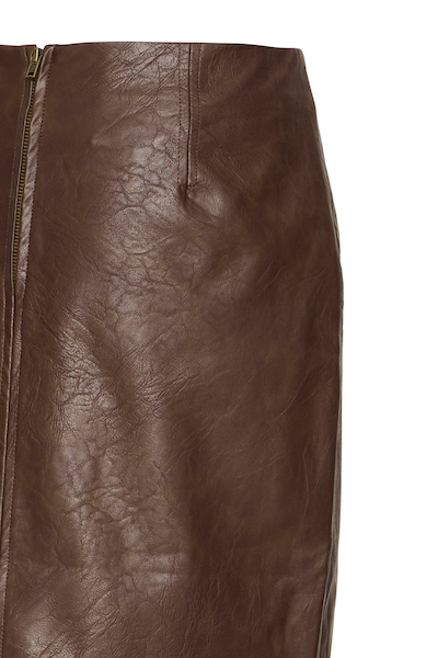 Cette mini-jupe en similicuir présente une coupe droite et des coutures subtiles pour une allure moderne. Sa longueur genou et sa fermeture zippée offrent un style polyvalent et confortable, au quotidien comme en soirée.