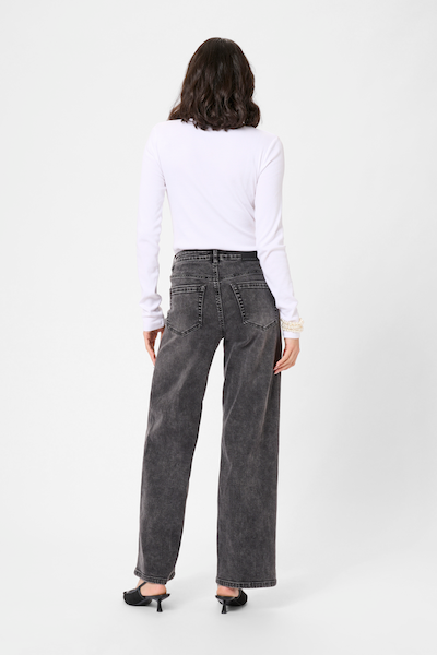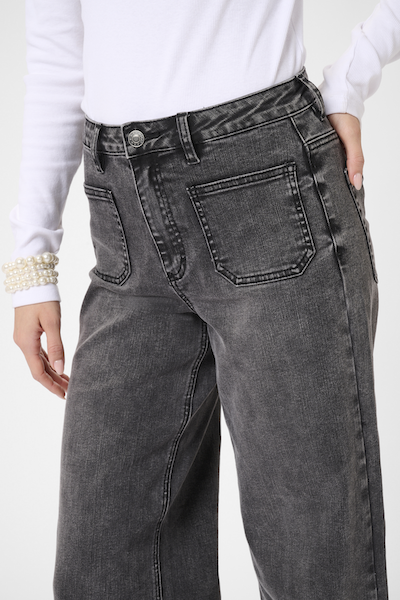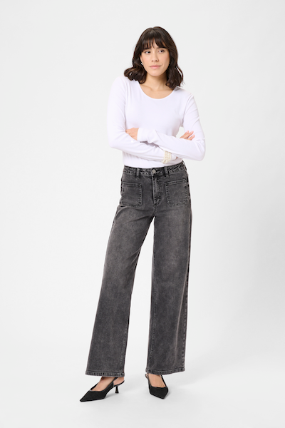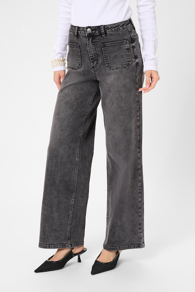 Ce jean large pour femme présente une coupe taille haute moderne, des poches plaquées sur le devant et une longueur totale. Conçu pour allier confort et style décontracté, il s'adapte à toutes les occasions.