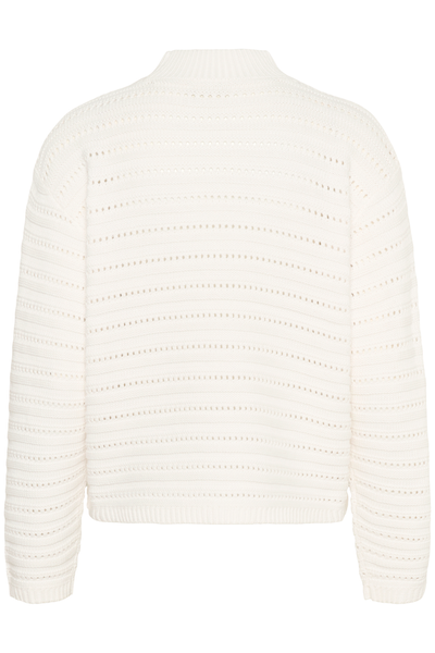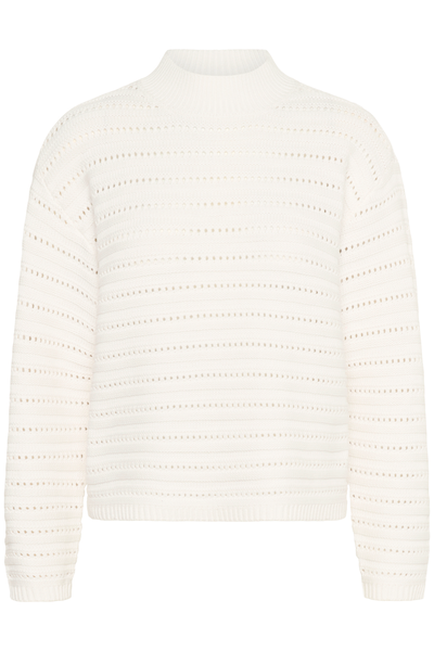 Ce pull en maille pour femme présente une coupe décontractée, un col montant et des manches longues. Ses délicats détails ajourés lui confèrent une grande polyvalence, alliant confort et style moderne.