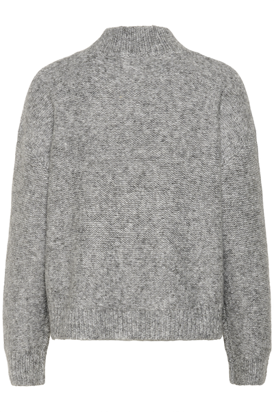 Tricot gris foncé à manches longues et col rond ajuster au cou. Parfait pour vous tenir au chaud durant les temps plus frisquet tout en abordant un look décontracté.