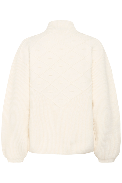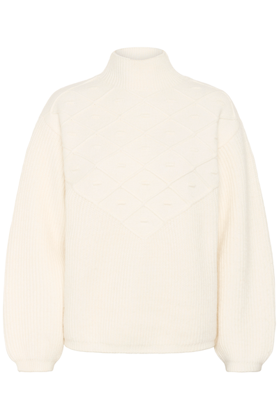 Ce pull pour femme présente une coupe décontractée et un col montant, offrant chaleur et confort. Ses détails texturés distinctifs sur le devant ajoutent une touche d'élégance.