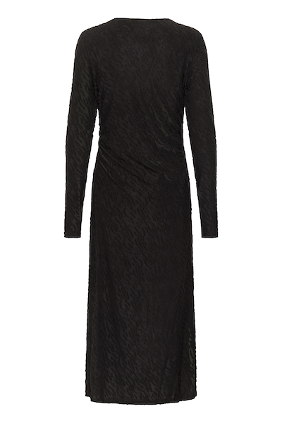 Cette robe midi à manches longues pour femme présente une coupe ajustée et un design texturé pour une élégance moderne. Son encolure ras du cou et sa longueur cheville lui confèrent sophistication et confort, idéale en journée comme en soirée.