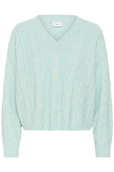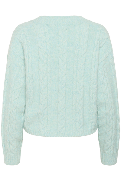Chandail vert menthe en tricot. Parfait pour se réchauffer dans les temps plus frisquet tout en ajoutant une touche de couleur et de style à votre look.