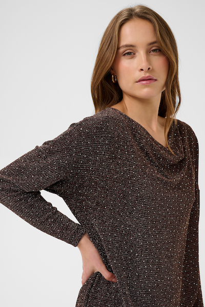 Robe à manches longues avec haut chauve-souris. Parfait pour une occasion spéciale ou pour le temps des fêtes! Une petite touche de brillant qui complète votre look avec style.
