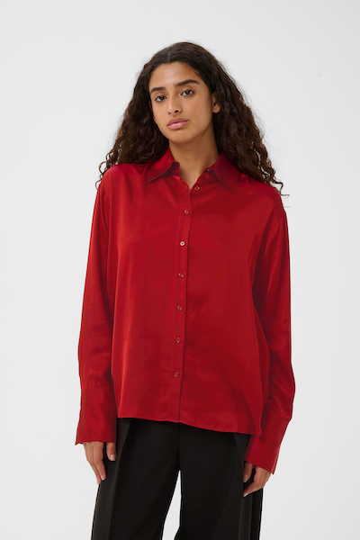 La chemise Pauline présente une coupe ample et des boutons sur le devant.