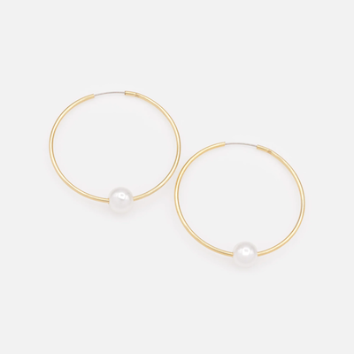 BOUCLES D'OREILLES EN ANNEAUX AVEC PERLE - PL253E002GL