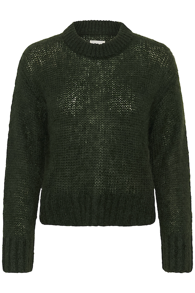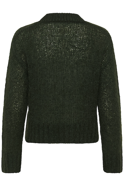 Chandail en lainage vert forêt à manche longue. Parfait pour se tenir au chaud durant les temps plus frisquet, tout en abordant un look décontracté.