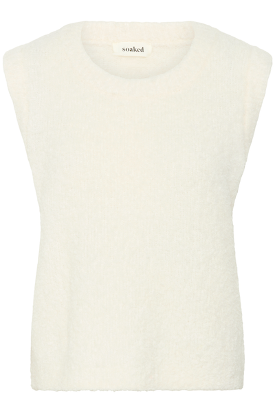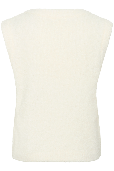 Tricot sans manches doux et léger, à la texture duveteuse et à la coupe décontractée. Idéal à superposer ou à porter seul pour un look épuré et élégant.