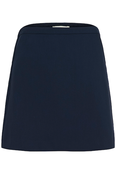 Jupe trapèze mi-cuisse Cassic. Taille élastique, poches devant et fermeture éclair sur le côté.