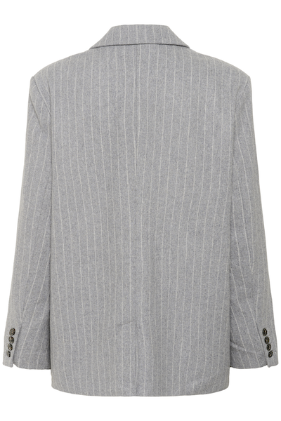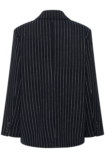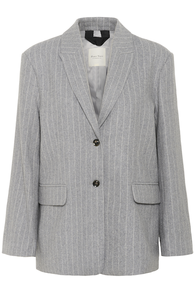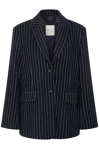 Ce blazer à fines rayures arbore une coupe intemporelle et soignée, avec une fermeture à deux boutons. Son mélange de laine douce et ses épaules structurées lui confèrent une allure sophistiquée. Portez-le avec le pantalon assorti ou par-dessus un t-shirt basique.